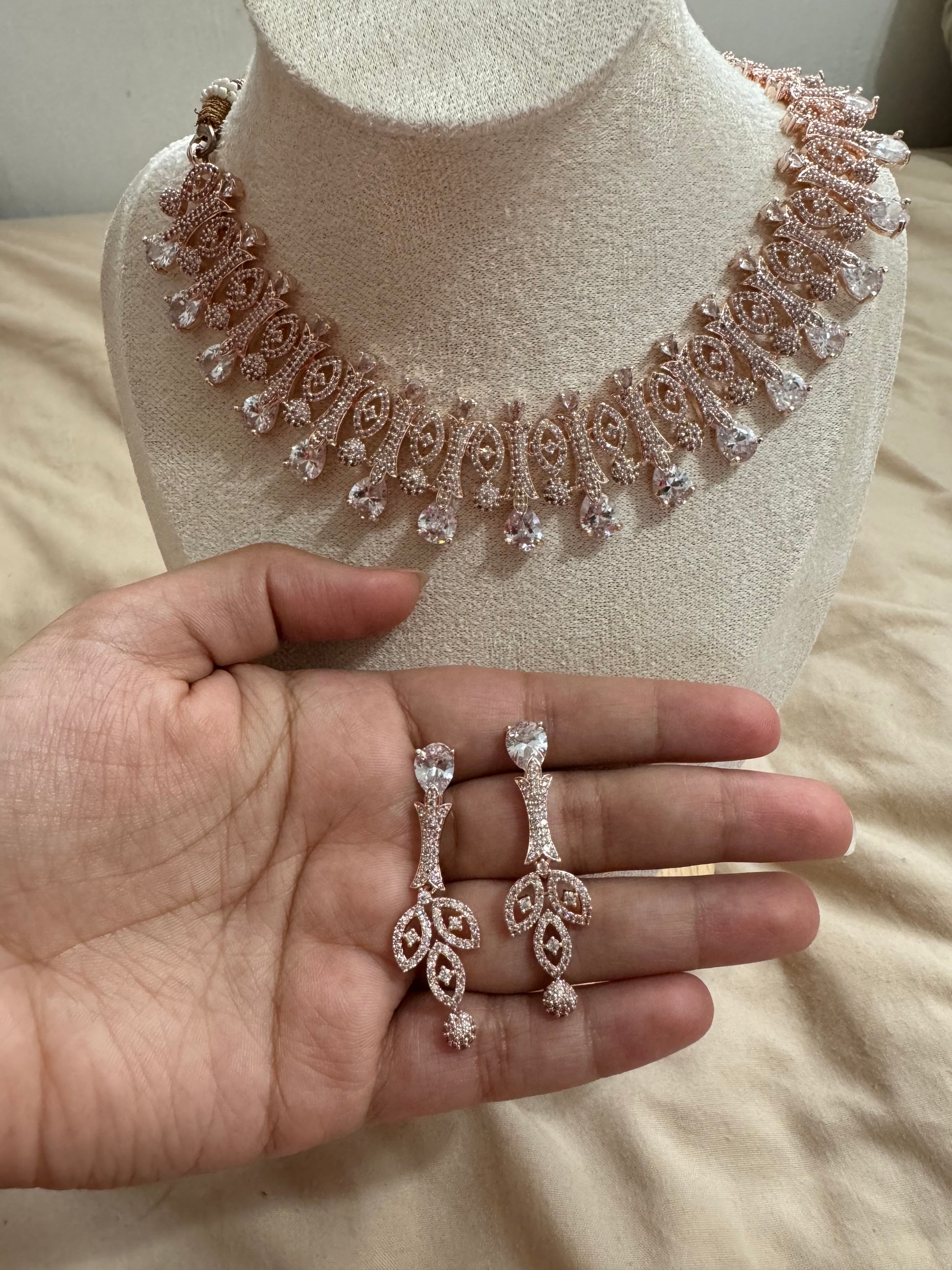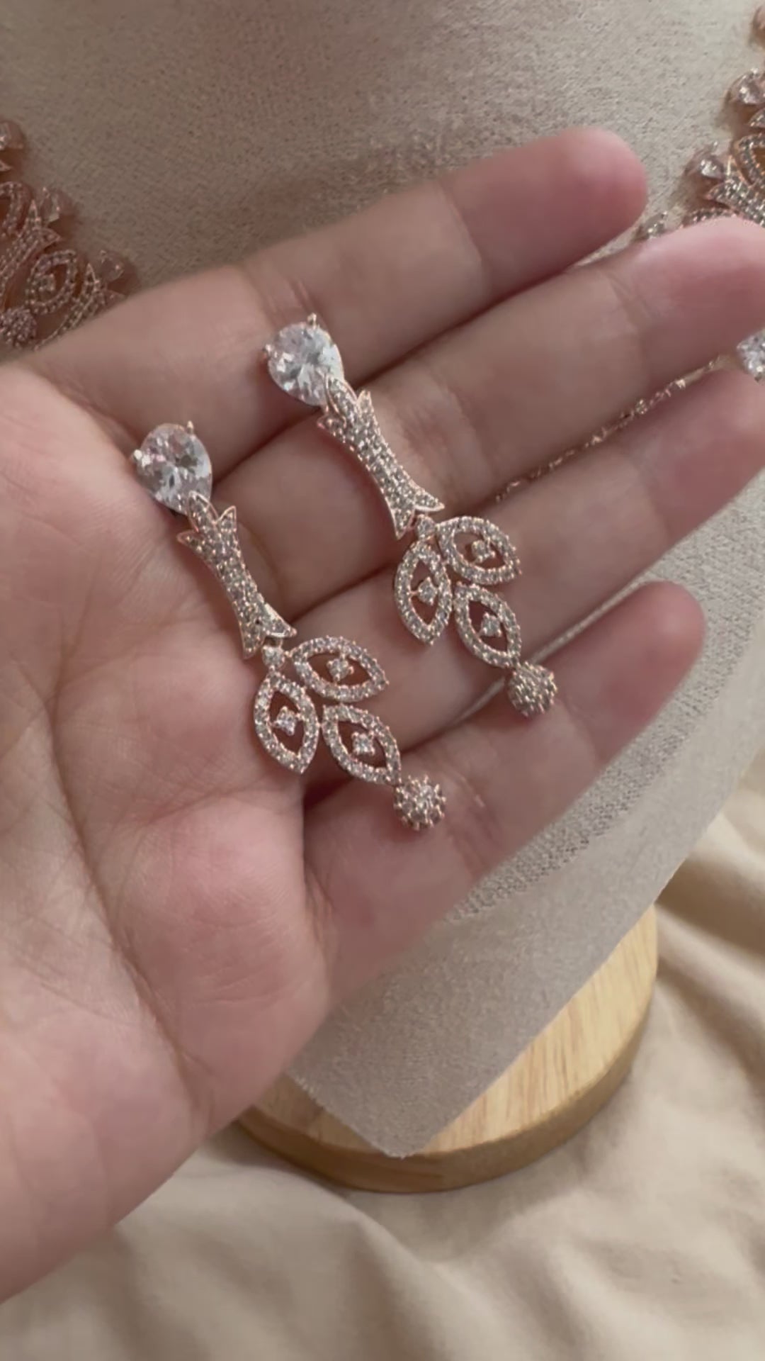 Rose Gold Cubic Zirconia Jewelry Set | Elegant Wedding & Party Wear Accessories for South Asian Brides